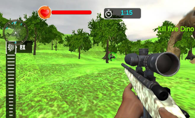 Vai a caccia di dinosauri in questo gioco ambientato nel Giurassico. Armato di un potente fucile di precisione, guarda nel radar dove sono posizionati i dinosauri, avvicinati a loro e quando sono a tiro, spara. Per ogni livello hai un certo numero di dinosauri da cacciare in un tempo limite che varia a seconda del livello.