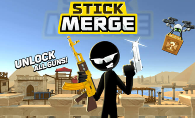Combina le pistole tra di loro e crea armi sempre più potenti. Poi vai al poligono di tiro e spara contro gli Stickmen nemici. Migliora il tuo arsenale, aggiorna la tua pistola, raccogli tutti i bonus e diventa il miglior tiratore della città. Quanto potente puoi creare un’arma nella lotta contro i nemici? Gioca a Stick Merge per scoprirlo!