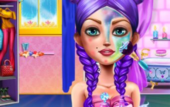 Rapunzel è molto triste, perché si è svegliata tardi e adesso deve sbrigarsi, per non arrivare in ritardo a scuola. Dalle una mano a fare la pulizia del viso spalmando una maschera purificante e poi eliminando i brufoli. Stendi ancora…